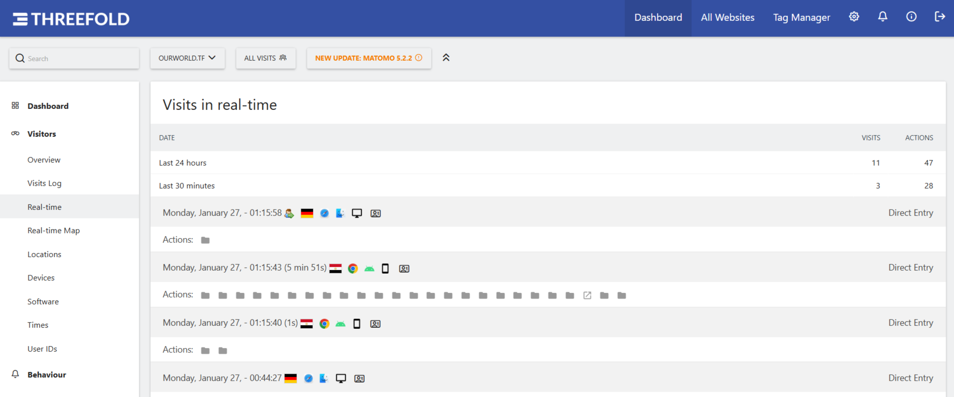 Add Motomo analytics / tracking to current TF and related websites